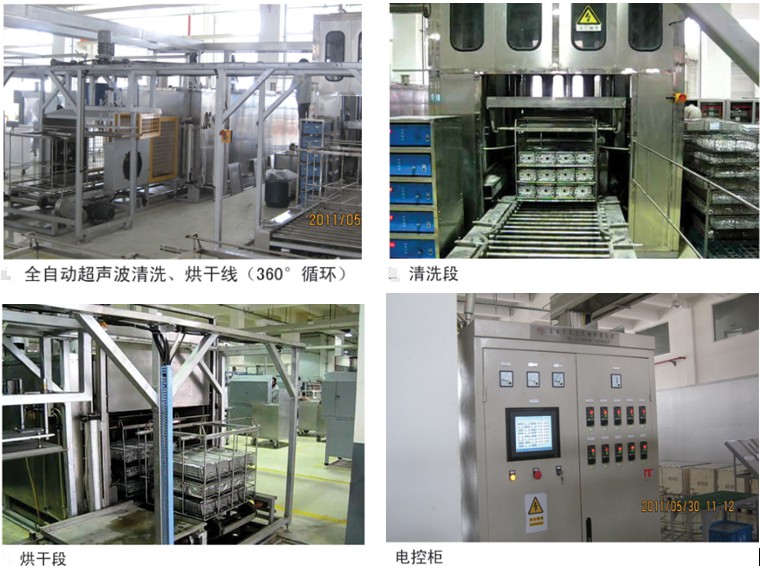 Artificially, the workpiece is first placed in the small workpiece basket, then the small workpiece basket is placed in the hanging basket, and then the hanging basket is placed on the drum platform at the upper part (automatic positioning). The whole set of equipment is controlled by PLC programmable controller. The manipulator automatically places the basket in the ultrasonic degreasing tank. The cleaning time (rhythm) can be adjusted according to the output of the workpiece and the contamination status of the workpiece. After reaching the set time, the manipulator places the basket in the lower channel cleaning slot in turn until the basket is placed on the conveying chain in the transition zone. Then the rotary angle manipulator places the basket in the upper part of the drying oven. On the conveyor chain, after drying and air-cooling, the hanging basket is placed on the upper conveyor drum of the cleaning section by the circuitous rotary manipulator (note: the upper and lower parts of the equipment are in the same position).